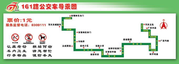 1、161路自汽車五隊發(fā)車經(jīng)湖州路→淮河路→泉州路→瀏陽河路→東八路→運河路→泉州路→府前街→東六路→南一路→東四路→運河路→膠州路→淮河路→東三路→大渡河路→安慧西區(qū)北門,票價不變。
