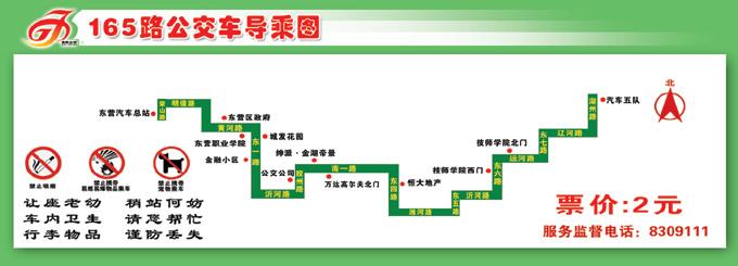 2、165路汽車五隊發(fā)車經(jīng)湖州路→遼河路→東七路→運河路→東六路→沂河路→東五路→濰河路→東四路→南一路→膠州路→沂河路→東一路→黃河路→明鏡路→蒙山路→汽車總站,票價不變。