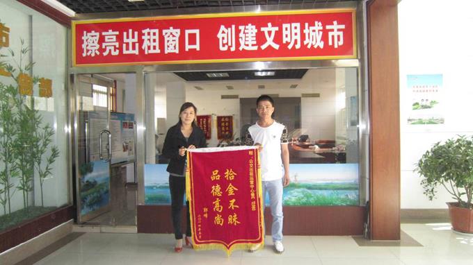 5月1日晚,家住史口鎮(zhèn)的郭峰先生在西城淄博路就餐后搭乘魯ET1980號(hào)出租車返回東城東三路附近下車,下車時(shí)不慎將隨身攜帶手提袋里的手機(jī)、銀行卡等證件及其他物品遺失在出租車上,因下車未取出租車發(fā)票,一時(shí)無法聯(lián)系司機(jī)。次日出租車駕駛員李懷芬將撿到的手提袋主動(dòng)交給運(yùn)營(yíng)中心,后經(jīng)運(yùn)營(yíng)中心工作人員與乘客取得聯(lián)系,將出租車司機(jī)李懷芬撿到的手提袋物歸原主。事后乘客郭峰送來一面錦旗對(duì)出租車駕駛員李懷芬表示感謝。