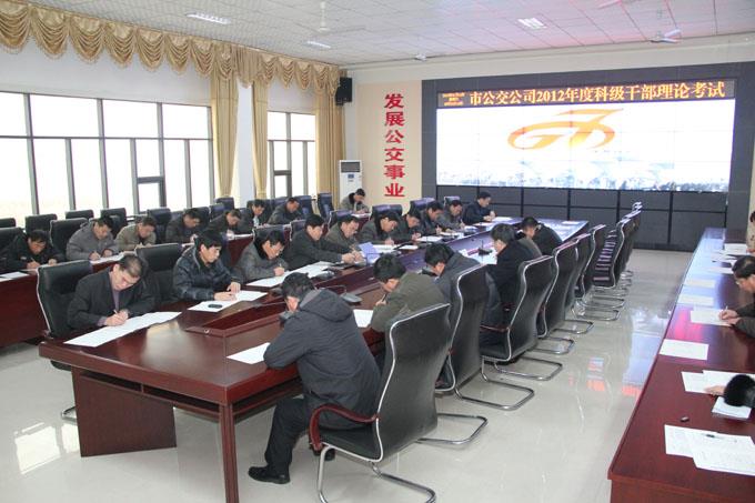 根據(jù)《2012年全市干部理論學(xué)習(xí)安排意見》(東學(xué)委辦發(fā)【2012】1號)的要求,市公交公司于2013年1月12日上午,在一樓3G視頻會議室舉行了2012年度科級干部理論考試??荚噧?nèi)容為黨的十八大精神、建設(shè)生態(tài)文明典范城市部署和知識以及當(dāng)前理論熱點(diǎn)等問題。