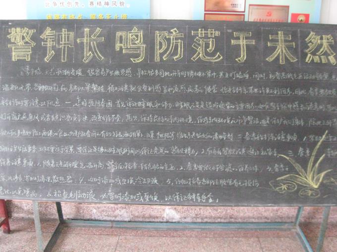陽春三月,氣溫回升,是讓人感覺最舒服的季節(jié),但由于季節(jié)交換,白天變長(zhǎng),人容易出現(xiàn)“春困”現(xiàn)象,尤其是對(duì)駕駛員來說,受“春困”影響更大,針對(duì)春困現(xiàn)象,汽車三隊(duì)一邊做好安全叮囑,要求廣大駕駛員注意行車安全,還專門出了一期黑板報(bào),詳細(xì)講解了春季行車注意事項(xiàng),同時(shí)提醒廣大駕駛員晚上要少熬夜,保證足夠的睡眠,中午要盡可能的休息一會(huì),把“春困”影響降低到最小,確保日常行車安全。