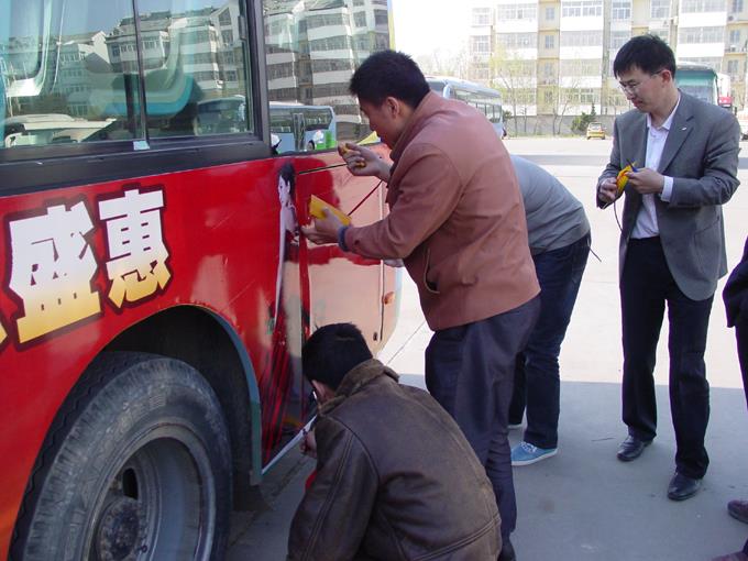 市公交公司廣告部對(duì)車(chē)體廣告進(jìn)行集中修整