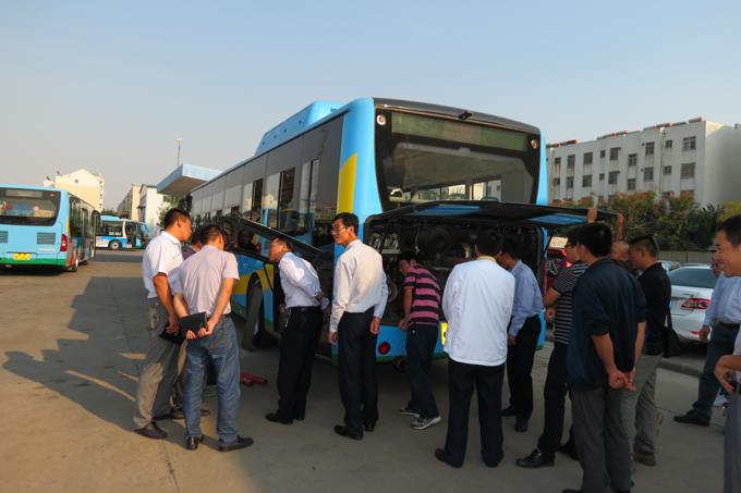 今年市公交公司購入的60輛中通新能源公交車采用氣電混合動力、AMT變速箱、空氣懸架、前后輪盤式制動,配置較高,在日常維護和修理上與公司現(xiàn)有的傳統(tǒng)常規(guī)車輛有較大不同,對維修人員的理論知識和維修技能要求較高。為了使維修人員深入了解此類車輛的基本原理、熟悉日常維護規(guī)范、掌握日常修理技巧和安全注意事項,以充分發(fā)揮此類車輛的最佳使用效能,市公交公司技術(shù)科邀請中通新能源客車廠和配套廠家技術(shù)人員對公交公司維修人員進行培訓(xùn)。此次培訓(xùn)采取理論與上車操作相結(jié)合的形式,理論培訓(xùn)結(jié)束后,培訓(xùn)老師還帶領(lǐng)參訓(xùn)人員來到車場,對照現(xiàn)場實物進行了講解和探討。