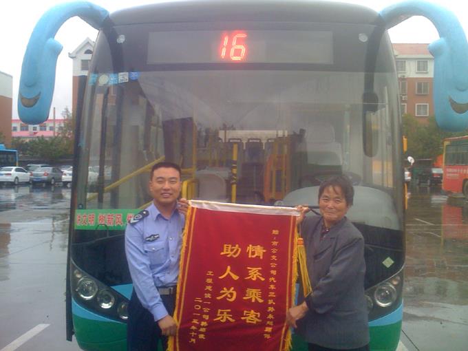 10月14日下午,一位老太太拿著一面寫有“情系乘客,助人為樂”的錦旗,來到市公交公司汽車三隊(duì)辦公室,對16路駕駛員孫永超表示致謝,也為公交公司和車隊(duì)培養(yǎng)了如此優(yōu)秀的員工表示敬意……