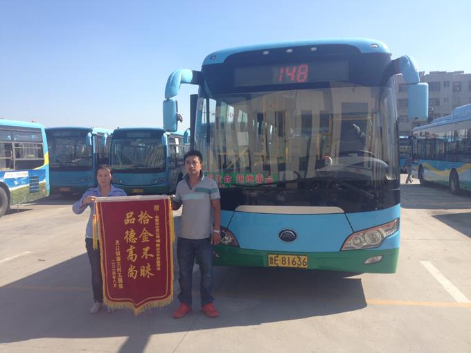 9月3日,家住東營區(qū)史口鎮(zhèn)寨王村的王國梁先生乘坐148路車外出,下車后發(fā)現(xiàn)錢包遺忘在公交車上。汽車四隊駕駛員郭嘉撿到了王國梁先生遺失的錢包,發(fā)現(xiàn)內(nèi)有身份證、銀行卡、現(xiàn)金一萬二千余元,忙將其上交車隊暫時保管,車隊及時聯(lián)系失主并將失物完璧歸趙。王國梁接過失而復(fù)得的錢包顯得意外而又驚喜,執(zhí)意要給公交車駕駛員郭嘉師傅酬金3000元表示感謝,被她婉言謝絕了。翌日,王國梁拿著一面寫有“拾金不昧、品德高尚”的錦旗來到車隊,感謝郭嘉師傅拾金不昧的高尚品德。