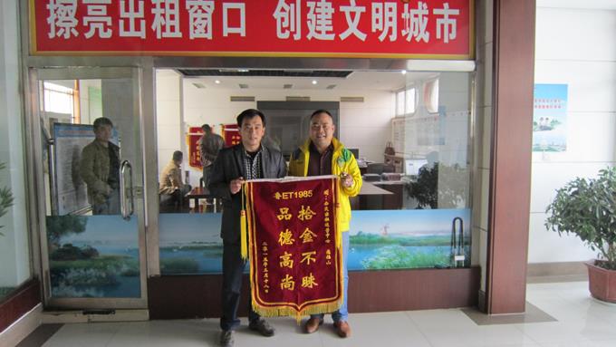 3月18日,市民燕先生拿著一面寫有“拾金不昧、品德高尚”的錦旗來到市公交公司出租汽車運營中心,感謝魯ET1985出租汽車駕駛員寇福山師傅拾金不昧的高尚品德。據(jù)了解得知,3月16日晚上20時,燕先生乘坐寇福山師傅駕駛的出租車到偉浩假日,下車時將一部價值4000元左右的opp手機落在出租車上。次日,駕駛員寇福山將手機送到運營中心,在運營中心工作人員的幫助下聯(lián)系上失主,將手機歸還失主。燕先生握著寇福山的手,非常激動,不住地夸贊并連連表示感謝。出租車駕駛員寇福山告訴燕先生,撿到物品主動上交是我們公交出租汽車駕駛員應該做的,也是我們每名出租車駕駛員應盡的義務。