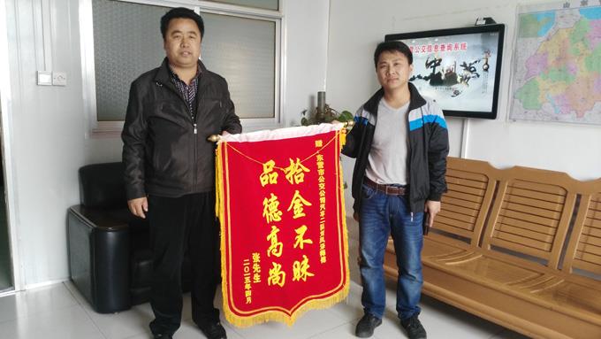 近日,市民張先生手執(zhí)一面寫有“拾金不昧,品德高尚”的錦旗來到東營市公交公司汽車二隊(duì),感謝劉風(fēng)澤師傅拾金不昧的高尚品德。