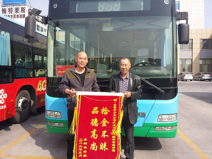 近日,市民李樹林先生帶著家人,將一面寫有“拾金不昧,品德高尚”的錦旗送到了市公交公司汽車六隊(duì)。