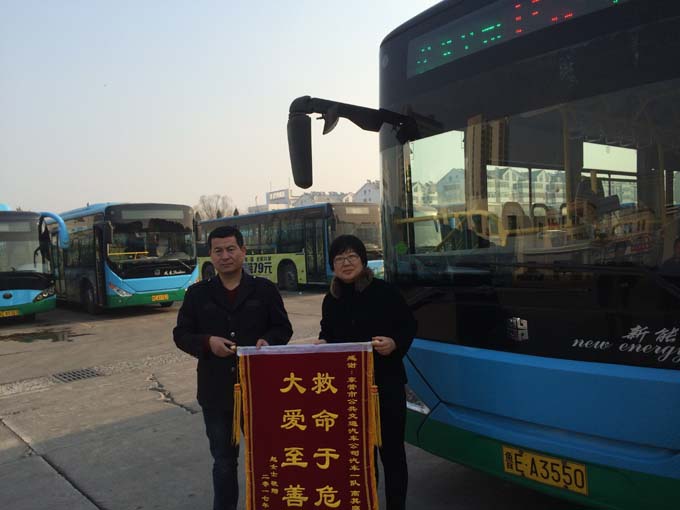 3月11日上午,市民趙女士拿著一面寫有“救命于危、大愛至善”的錦旗來到市公交公司汽車一隊,感謝152路駕駛員高其庭師傅見義勇為的高尚品德。據(jù)車隊了解得知,3月2日15時10分,高其庭駕駛魯E81532號車執(zhí)行從公交公司至火車站的152路任務(wù),當(dāng)車行駛至科英電子公司時,突然聽到有乘客說有人暈倒了,高其庭立即停車查看,發(fā)現(xiàn)一位阿姨臉色發(fā)黃、口吐白沫,情況十分危急。他立即拔打了120與急救中心聯(lián)系,同時將情況告知車隊。在征得車上乘客同意的情況下駕車趕往人民醫(yī)院,途中由其老伴和一名穿紅色上衣的好心乘客照顧。到達(dá)市人民醫(yī)院急救中心后,高其庭與病人老伴協(xié)同醫(yī)護(hù)人員將其送下救治。該乘客就是趙女士的母親。