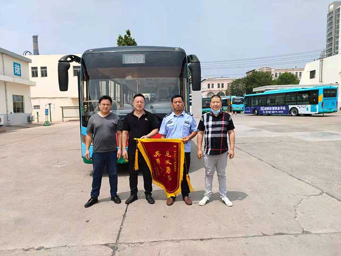 7月11日上午,市民王云峰和家人帶著繡有“見義勇為、英勇救人”的錦旗來到市公交公司汽車一隊(duì),感謝103路駕駛員商光亮的救人之舉。