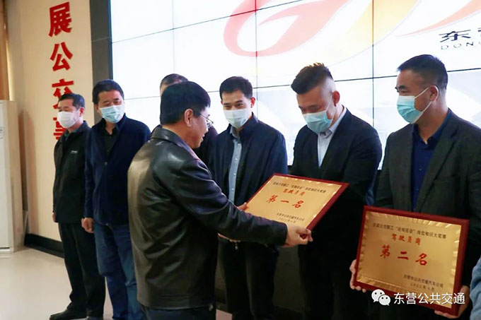 會前,舉行了公司首屆公交職工“應(yīng)知應(yīng)會”崗位知識大獎賽頒獎儀式,公司獲獎單位上臺領(lǐng)獎并集體合影。