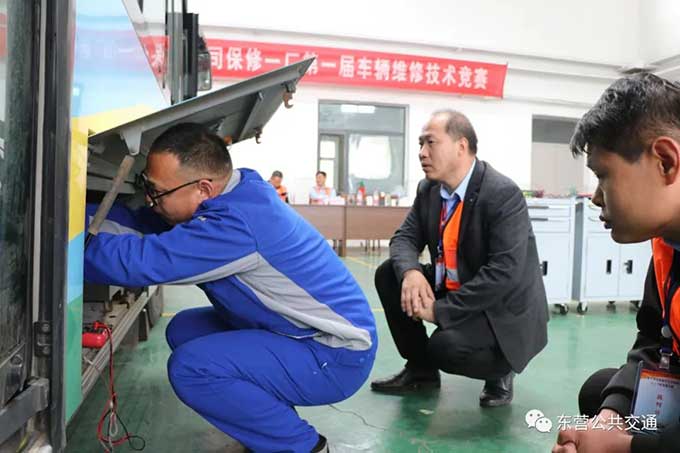為保證比賽的公平性,本次比賽理論考試試題開考前20分鐘出題打印,實(shí)操比賽裁判由多次參加省內(nèi)公交維修技術(shù)比武的裁判和選手擔(dān)任,并邀請中通客車廠售后服務(wù)經(jīng)理李延營同志擔(dān)任主要評分人員。