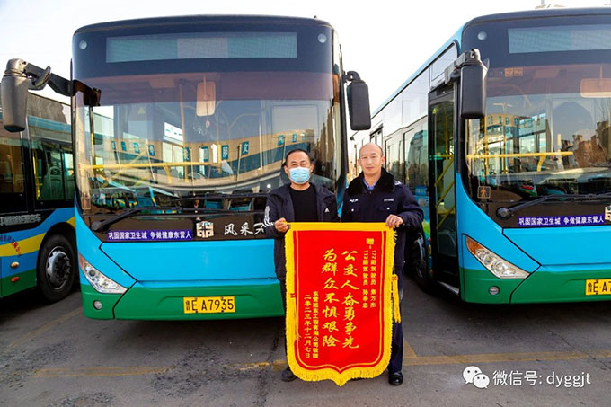 2023年12月8日,東營旭東工程公司的代表來到東營公交集團(tuán)汽車七隊(duì)贈(zèng)送一面錦旗,上面寫著“公交人奮勇爭先,為群眾不懼艱險(xiǎn)”的字樣。這時(shí)大家才知道,原來是兩位公交駕駛員見義勇為幫助他們滅了一輛正在自燃的小貨車。