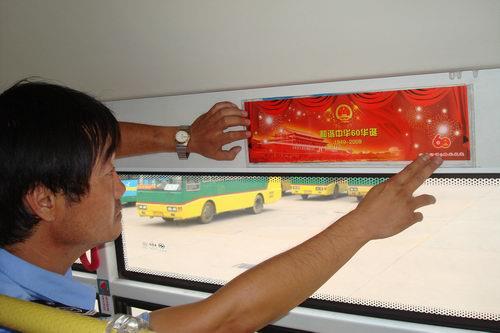 國慶節(jié)來臨之際,汽車七隊(duì)8路車組在車廂張貼“和諧中華60華誕”、“喜迎60周年國慶慶典”的慶國慶宣傳貼,為車廂增添了濃厚的節(jié)日氣氛 。
