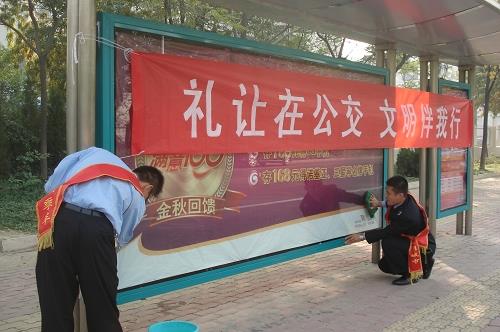 10月16日上午,市公交公司積極響應(yīng)市文明辦開展的“從我做起,走向文明”志愿服務(wù)集中行動,組織公司及車隊(duì)后勤人員對城區(qū)410個公交站牌站棚進(jìn)行了全面清潔,對亂貼亂畫及小廣告進(jìn)行了徹底清理,并積極疏導(dǎo)乘客排隊(duì)上車,維護(hù)乘車秩序,用實(shí)際行動踐行了“從我做起,走向文明”的活動宗旨,得到了廣大市民的一致好評。