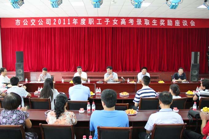 8月27日上午,市公交公司舉行了2011年度職工子女高考錄取生獎(jiǎng)勵(lì)座談會(huì),為今年高考錄取的職工子女進(jìn)行獎(jiǎng)勵(lì)。公司經(jīng)理朱新民出席,受獎(jiǎng)勵(lì)的職工及子女參加。