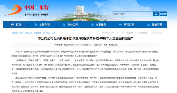 2019年1月30日東營市政府網站報道